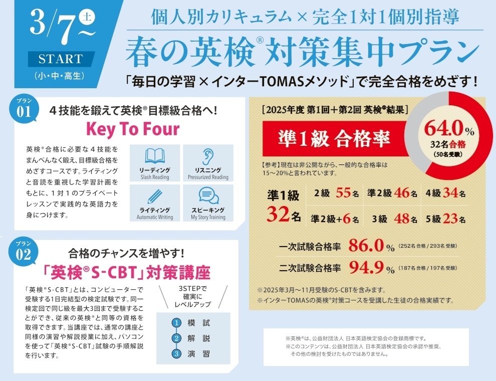 英検®対策総合コース「Key To Four」としてリニューアルしました。2025.09.10
