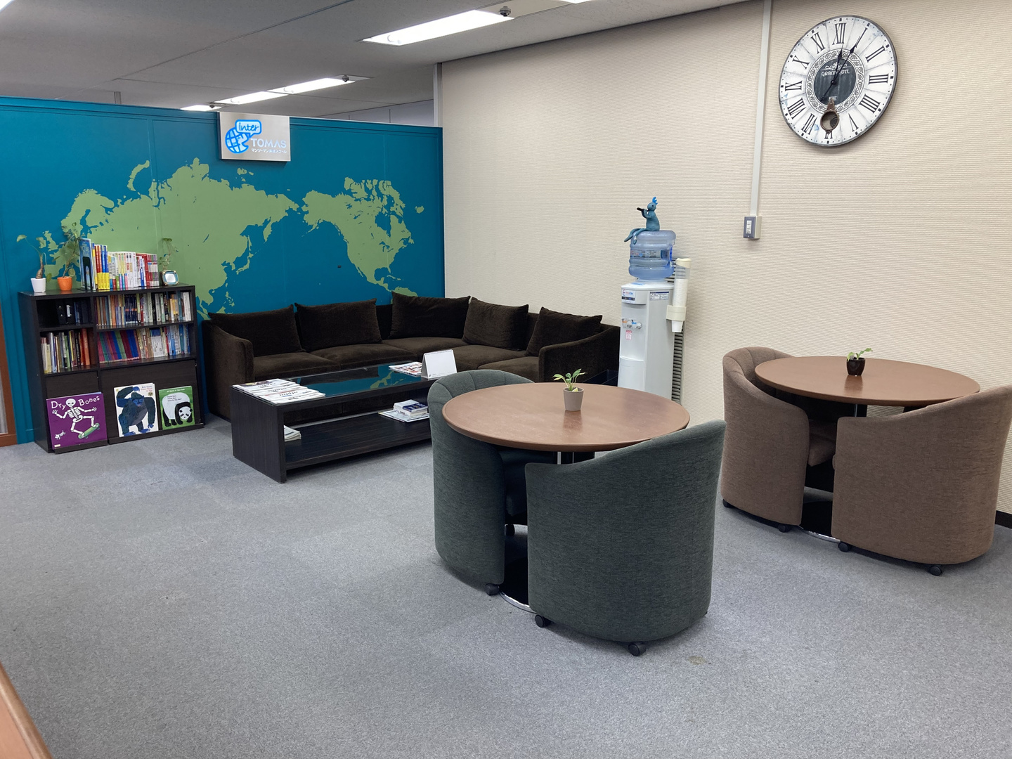 先生方も個性派ぞろいで教室の雰囲気も明るくなっております。レッスンでは生徒と真剣に向き合いメリハリのあるレッスンをおこないますので、モチベーションも高まるはずです。通っている生徒も休み時間にセミバイリンガルメソッドであるマイストーリーを練習し頑張って暗唱している生徒や、英語の本や新聞を読んでいる生徒、先生と英語で会話やゲームをしている生徒など様々な過ごし方をしています。英語に触れアウトプットできる環境を用意してお待ちしております。