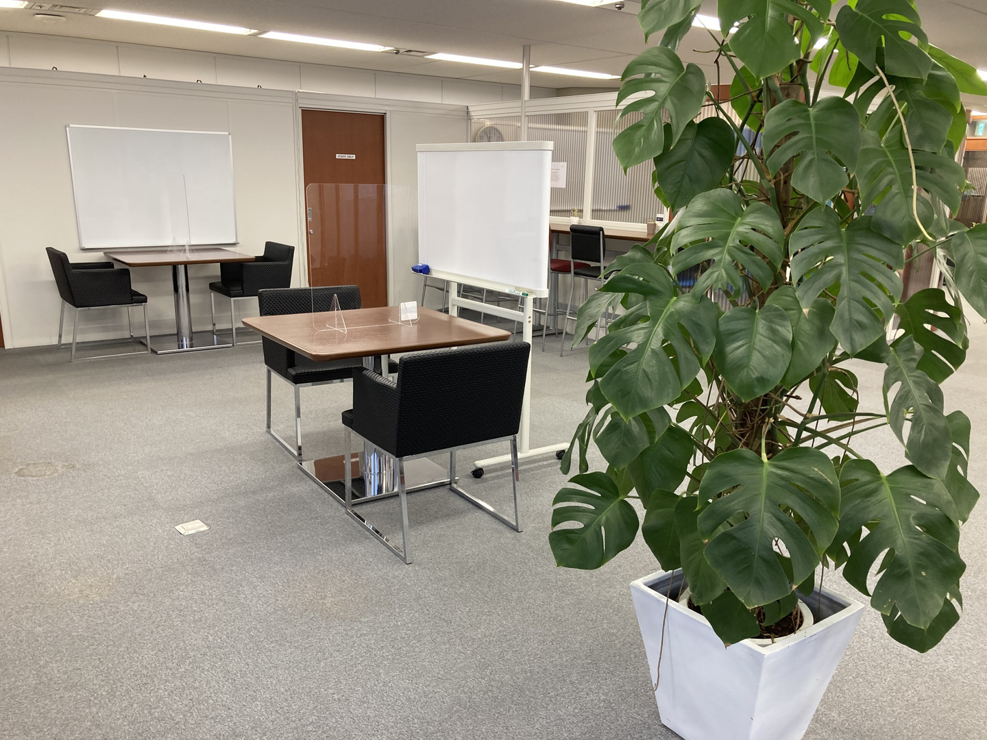 各ブースは広めの間隔をあけて設置しております。ホワイトボードを活用してレッスンを行います。