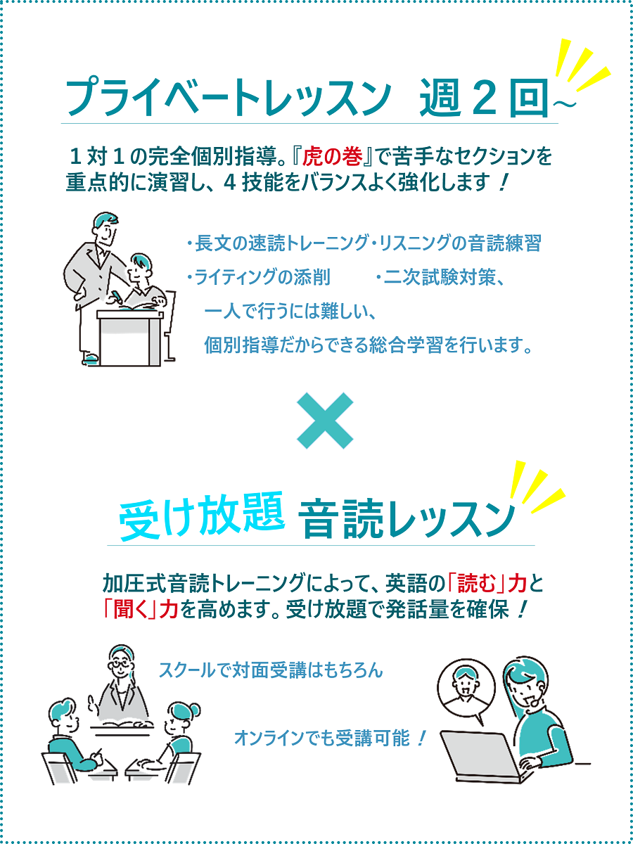 - 実践的な英文の加圧+反復で【余裕】を作る