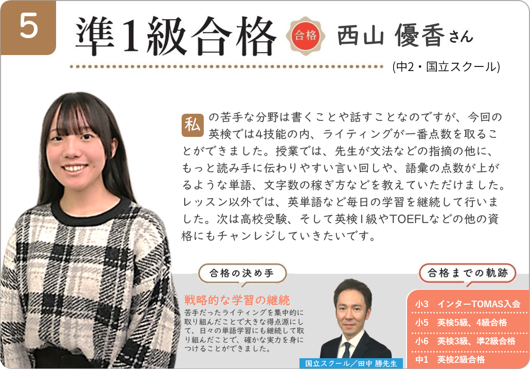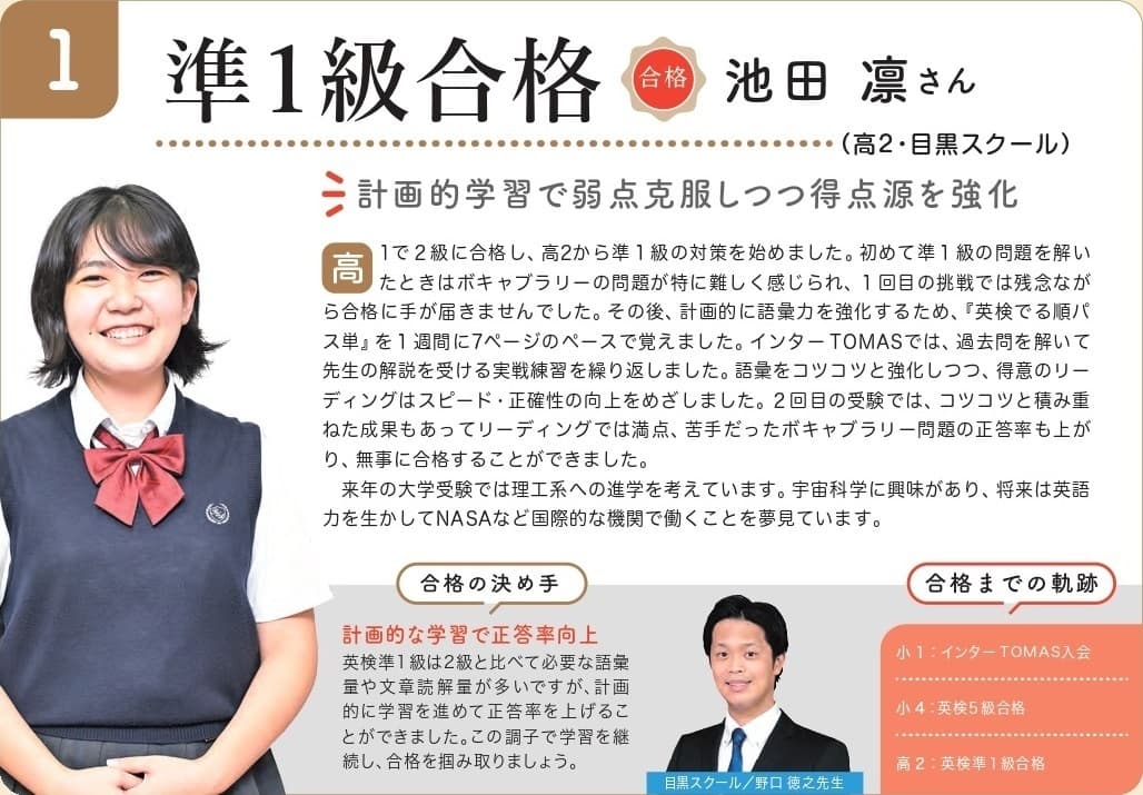 | 準1級 | 33名 | 23名 | 69.7% | 22名 | 22名 | 100% | ~15% |