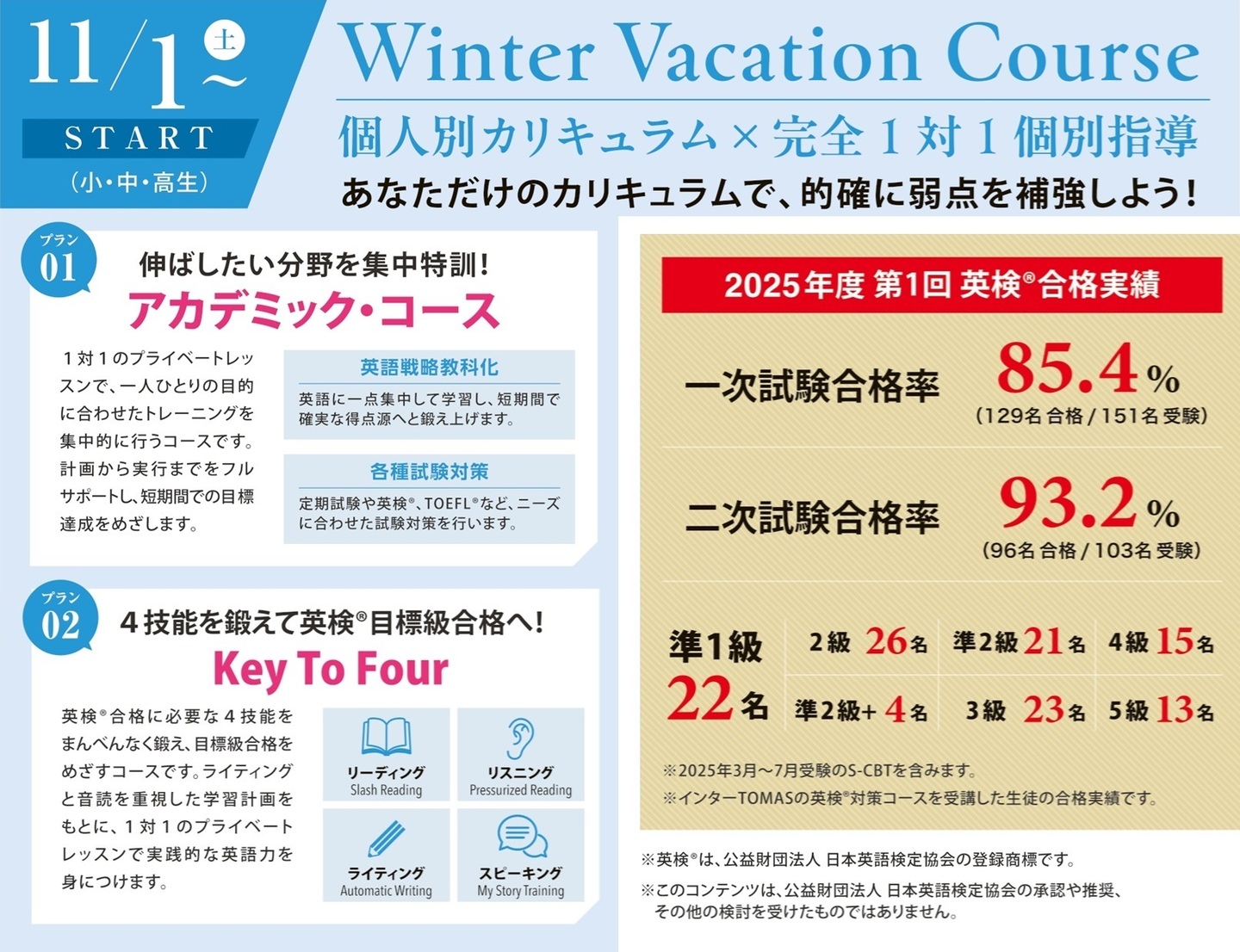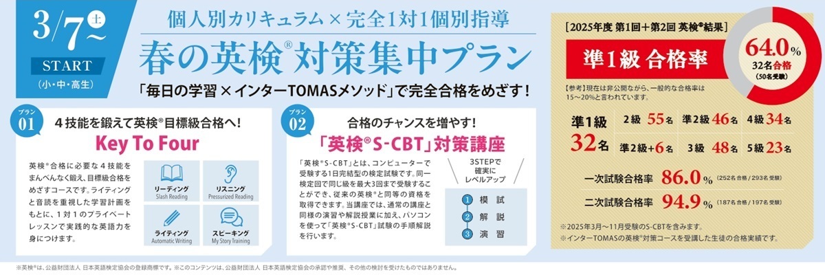 英検®対策総合コース「Key To Four」としてリニューアルしました。2025.09.10