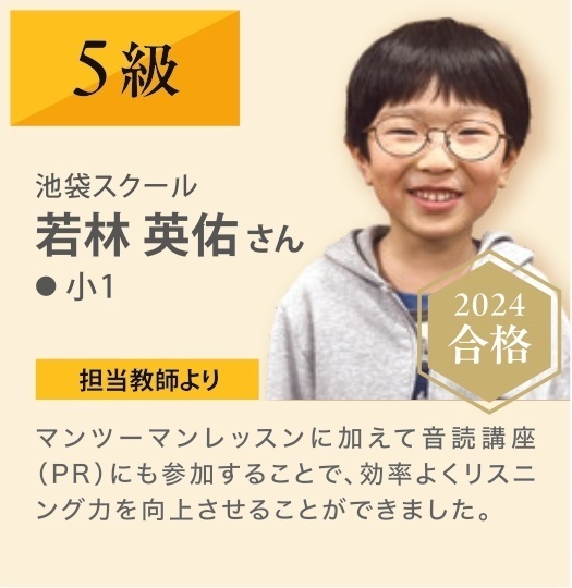 学習院大学文学部在学。英語の重層的な理解に力点を置いている。長文問題のトピックに関する補足など、言語以外の知識も取り入れる英検対策や、自身の大学受験経験を踏まえた重要事項を織り交ぜた文法対策を得意とする。英検準一級所持。