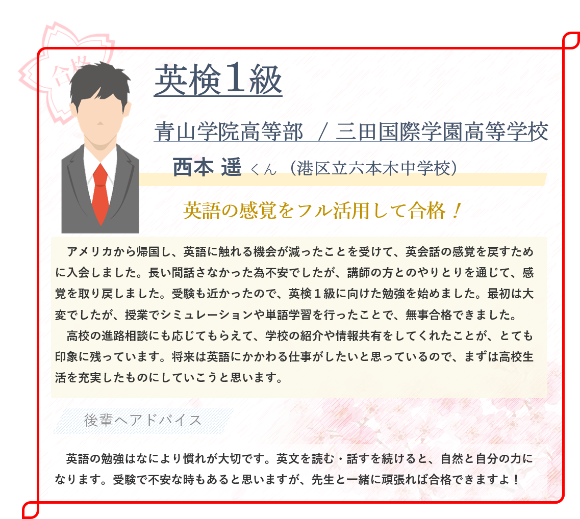 昨年も志望校へ多くの生徒を送り出すことができました。インターTOMASは英語を中心とした受験戦略をご案内いたします。